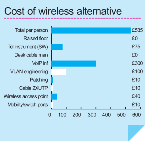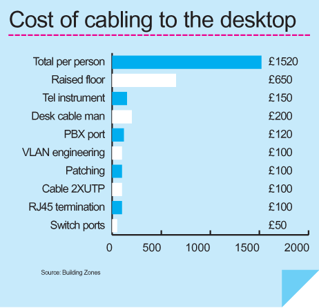 There will be other bonuses, such as saving on the cost of cabling (see "Cutting cables", overleaf). Developers could also benefit by eradicating the space wasted on raised floors and expensive fit-outs. Yet Gale could not find a single developer creating a wireless-centred building. "Investors are not interested in the future," he says. "They want what sells today."