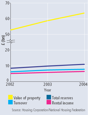 The Global Accounts, however, show a much more benign picture for housing associations with turnover up £795m, or 11.3%, to £7.8bn in the 12 months to April 2004 (see graph below).
