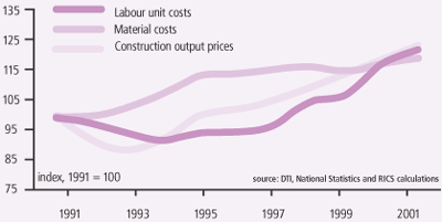 Output fell 12.8% between 1990 and 1993 before recovering in 1995, whereas employment levels fell 28% between 1991 and 1996 and only started to improve in 1997. This has caused labour costs to rise steadily since 1996 (see graph, right).