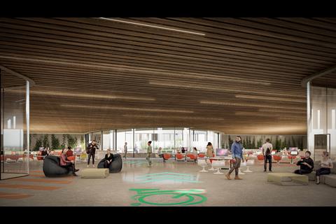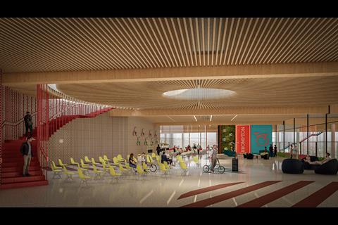 Holloway Studio’s design incorporates sustainable transport principles, with no new car parking spaces provided. Staff and visitors will be encouraged to travel by bike or public transport. A wide cycle path will serve as the building’s main artery, allowing cyclists to ride directly into the factory, through its interior and up to a rooftop museum.