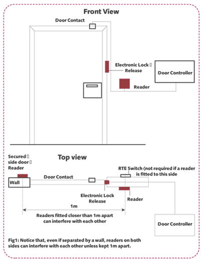 On most access points, there is a secured side (where the reader is placed) and an unsecured side (where the RTE switch is placed). Sometimes a reader is required on both sides of the door e.g. anti-passback, attendance reporting.