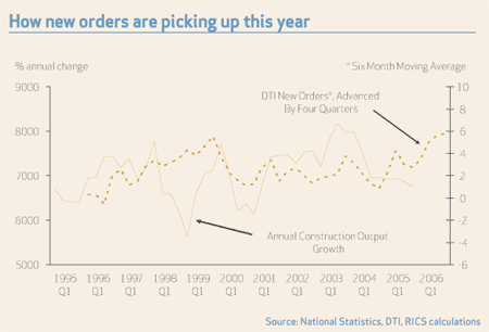 The latest economic brief from the RICS highlighted further positive signs. It said new orders had picked up in the first quarter of 2006 and this "could herald faster growth" during the rest of the year.