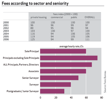 The Fees Bureau found that the hourly rate charged by sole principals of companies has leapt from £55 to £65 in 2006.