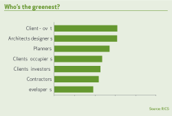 The QSs said the government was the best at implementing sustainable construction initiatives, closely followed by architects and designers.