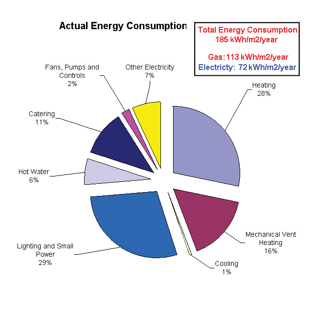 Finally, a holistic analysis of energy performance was undertaken, looking at thermal, lighting and airflow performance. The simulation calculated that the annual energy consumption for this building will be 185 kWh/m2/year, representing an annual energy saving of 59.4% over a type 4 ECON 19 building and 48.5% over an equivalent notational building. Associated reductions in CO2 emissions have also been estimated.