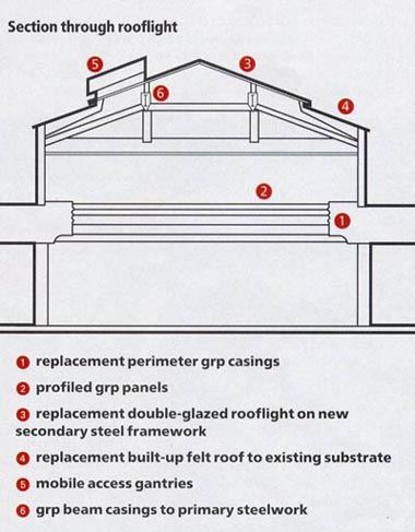 Under the requirements of the Construction (Design and Management) Regulations, methods of safe access to high-level features such as rooflights will need to be addressed. External access gantries and restraint systems at roof level must be provided.