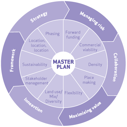 Large-scale mixed-use development has seen rapid growth over the last few years, and an ever broader range of skills, experience and knowledge are having to be applied to create viable masterplans. Complex, large-scale masterplan schemes often require a “structured framework” approach that is flexible enough to adapt to changing demands and market conditions over its long-term development. Delivering a masterplan that balances commercial viability and long-term sustainability requires collaboration between all stakeholders. A cohesive and deliverable masterplan will need to address issues of commercial viability and satisfy financial backers. Maximising the opportunities of phasing and development densities while limiting forward funding, non-revenue generating operations and avoidable infrastructure work will all provide the basis of a viable and deliverable solution.