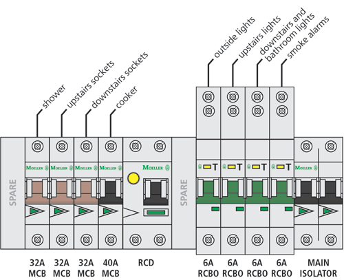 For those who require more information, Moeller Electric has produced a free publication called Moeller Consumer Units and the 17th Edition Wiring Regulations. The item covers in more detail the examples I have used here.