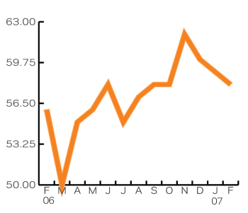 According to the official statistics from the DTI, the infrastructure sector had a good third quarter in 2006, rising 4% compared with the second quarter. And if November’s survey results are anything to go by, its revival is going to continue. The civil engineering activity index shot up to 77, a level not seen since January, and much higher than activity in either the residential or the non-residential sector. In addition, civil engineering respondents reported that actual orders and tender enquiries were at a record high. Given that activity is up, and is set to rise further, it is unsurprising that firms expect to increase their employment levels over the next few months.