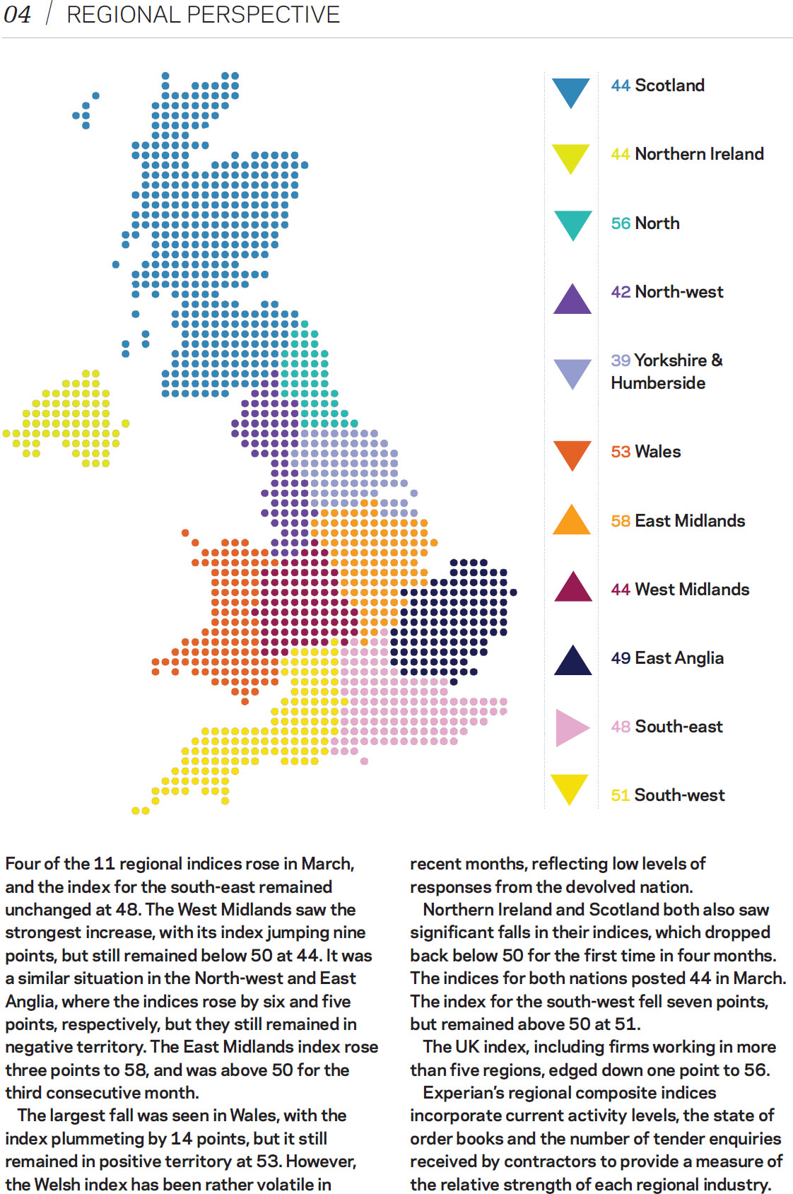Experian’s regional composite indices incorporate current activity levels, the state of order books and the number of tender enquiries received by contractors to provide a measure of the relative strength of each regional industry.