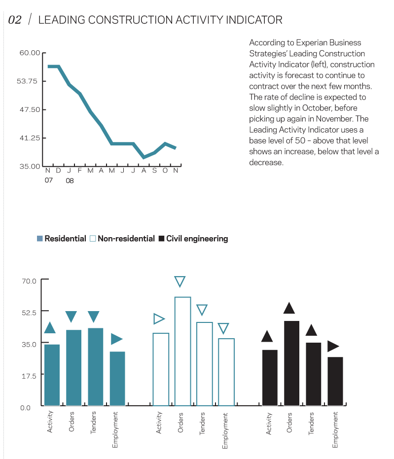 This an extract from the monthly Focus survey of construction activity undertaken by Experian’s Business Strategies division on behalf of the European Commission as part of its suite of harmonised EU business surveys. The full survey results and further information on Experian Business Strategies’ forecasts and services can be obtained by calling 0870-1968 263 or logging on to www.business-strategies.co.uk