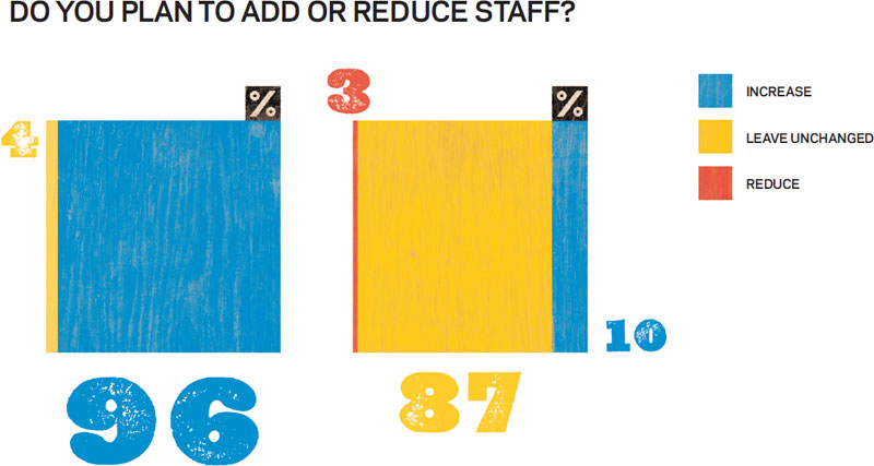 There were other glimmers of optimism in our survey, too. For one, most of the respondents are hopeful that no more lay-offs will be necessary, with 66% saying they planned to leave staff numbers unchanged over the next year.