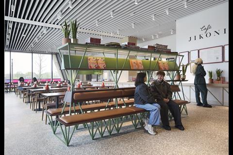 The interiors spaces, designed by JA Projects alongside A Practice for Everyday Life and Larry Achiampong, draw on the dynamic of high streets and parks – urban environments that are arguably more familiar for many younger visitors than museum galleries. Shop front-style glazing offers views to the exhibits, while the circulation areas are dotted with benches by London-based designer Andu Masebo.