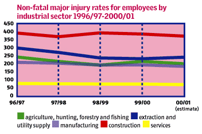 Other, Size 0 kbNon-fatal major injury rates for employees by industrial sector 1996/97-2000/01